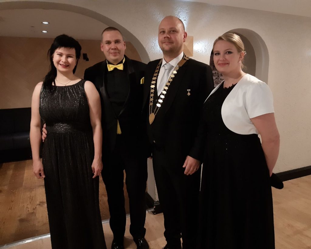 Vallanvaihtogaalan vastaanottokomitea valmiina. Jyväskylän nuorkauppakamarin puheenjohtaja 2019 Susanna Hämäläinen, Crazy Academyn projektipäällikkö Tapio Honkonen, C-aluepuheenjohtaja 2019 Jani Hinkka ja C-aluepuheenjohtaja 2020 Hanna Kallio-Kokko.