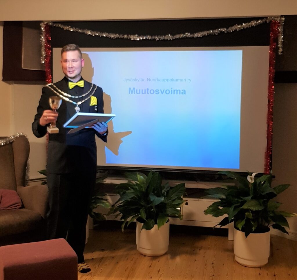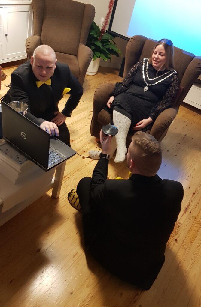 Tietovisa oli yllätyksellinen ja hauska. Prosecco-kysymyksen sai vain kaksi henkilöä oikein ja studiotiimi kääntyi WSET3-viinidiplomin kesällä saaneeseen puheenjohtajaan päin… Joo, myös puheenjohtaja pelasi, koska ei ollut tietovisaa nähnytkään. Paitsi yhden kysymyksen osalta oli tiedossa oikea vastaus: 11 maata oli tullut nähtyä JCI-pinssien kanssa – ja senkin enemmistö sai oikein. Jyväskylän asukasmäärä väärin ja jännittämään tuloksia. Pokerinaama päälle ja ei muuta kuin huutelemaan: ”Onko Timanttivanhus linjoilla?” ja ”Nooh, sitten vaan sieltä seuraava henkilö palkintosijoilta…”.
