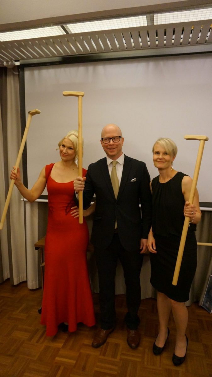 Kepitettävistä kuvassa ovat vasemmalta lukien Hanna Markuksela, Tero Toivonen ja Katariina Vuorela.