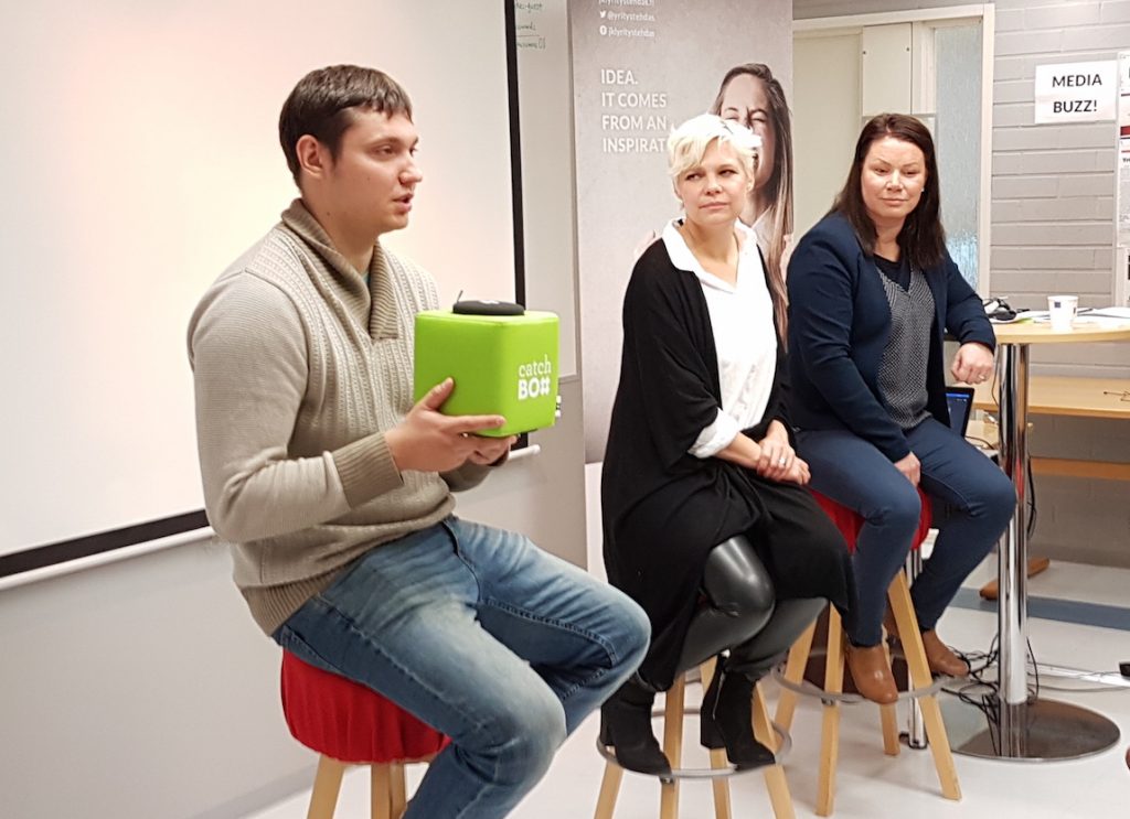 Ensimmäisessä Kahvikiihdytys-tapahtumassa lavalla (vasemmalta) Jukka Koivula, Titta Puurunen ja Kati Rauhaniemi. Kuva: Markus Mäntynen