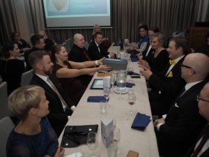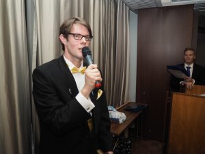 “Jyväskylän nuorkauppakamarin Glögikokous 2017 oli todella upea kokonaisuus. Iltaan mahtui satavuotiasta itsenäistä Suomea ja kamarimme perinteitä arvokkaasti kunnioittavien ohjelmanumeroiden lisäksi myös hauskoja, ehkä jonain päivänä myös perinteiksi muodostuvia, uusia ohjelmanumeroita, kuten tulevan puheenjohtajan ja valmistautuvan puheenjohtajan leikki, jossa osalle osallistujista löytyi pöydissä musiikin tahtiin kiertävästä laatikosta kivoja tehtäviä ensi vuodelle. Erityisesti mieltä lämmitti myös (erään arvion mukaan) ennätyksellinen osanotto, sillä tällä kertaa meitä oli mukana juhlimassa yhteensä noin kuusikymmentä senaattoria, kunniajäsentä, jäsentä ja koejäsentä aveceineen. Onnistunut kamarivuotemme sai ansaitsemansa päätösjuhlan.”